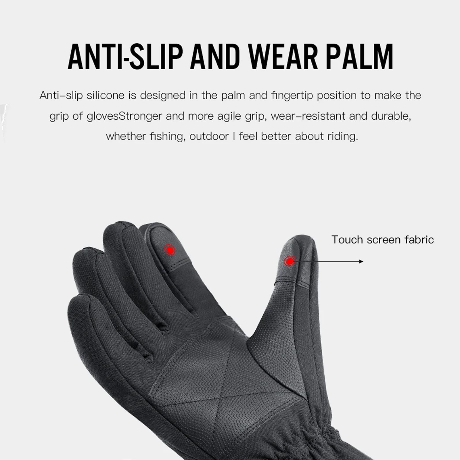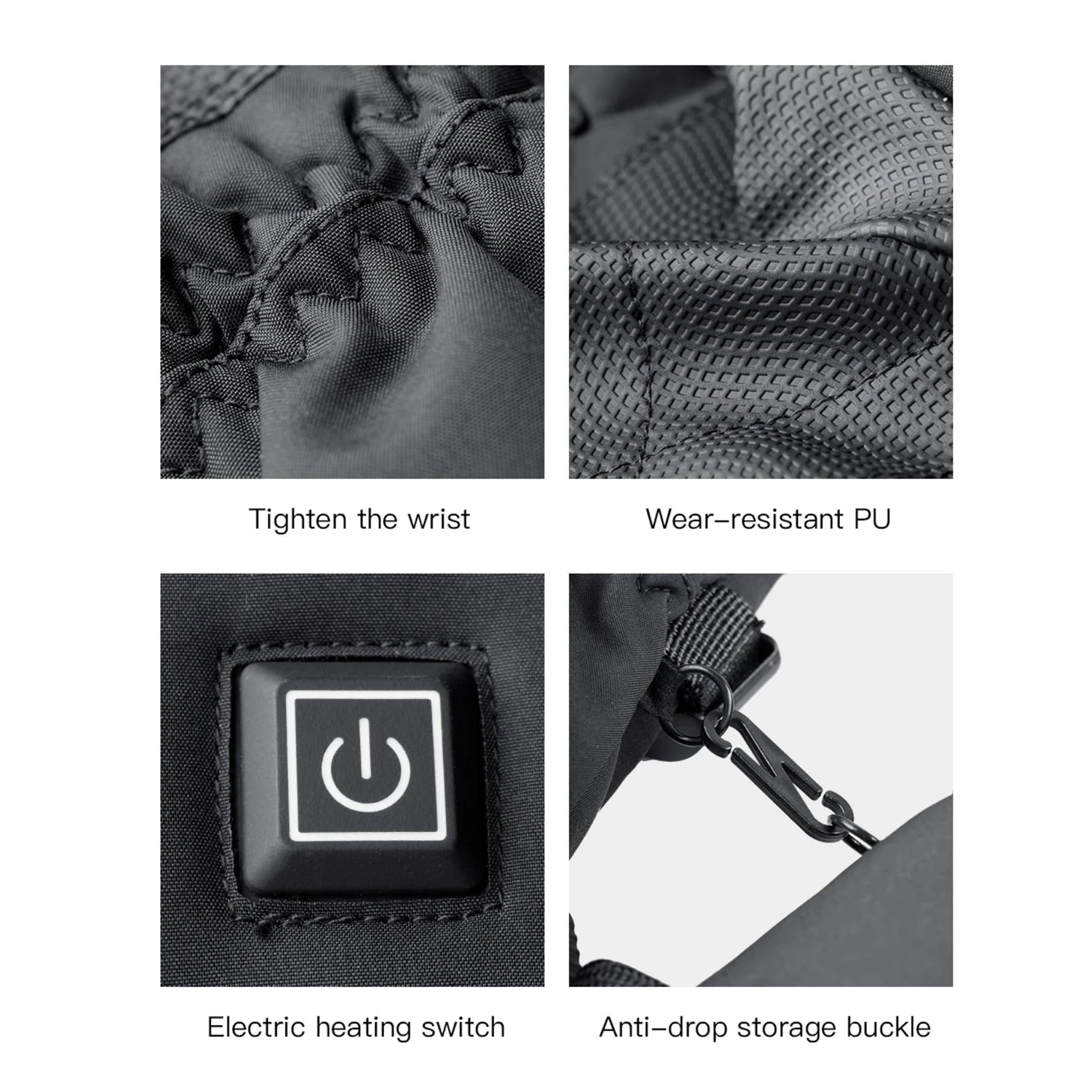 No. Reinforced PU palm zones add traction and durability. BlexiSki Heated Ski Gloves provide confident grip on bike bars, ski poles, and snow-tool handles.