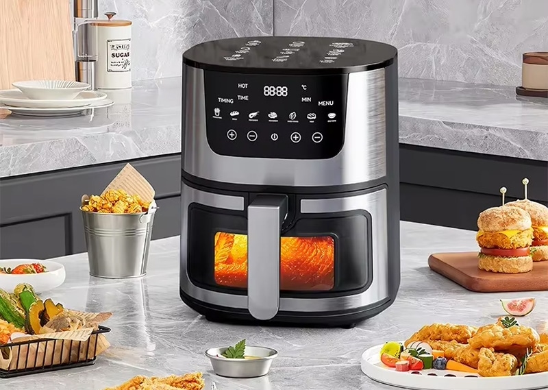 The CrispDum Air Fryer stands out with its smart LED touch controls, clear viewing window, and 2400W power—offering precision, convenience, and performance in one compact appliance.