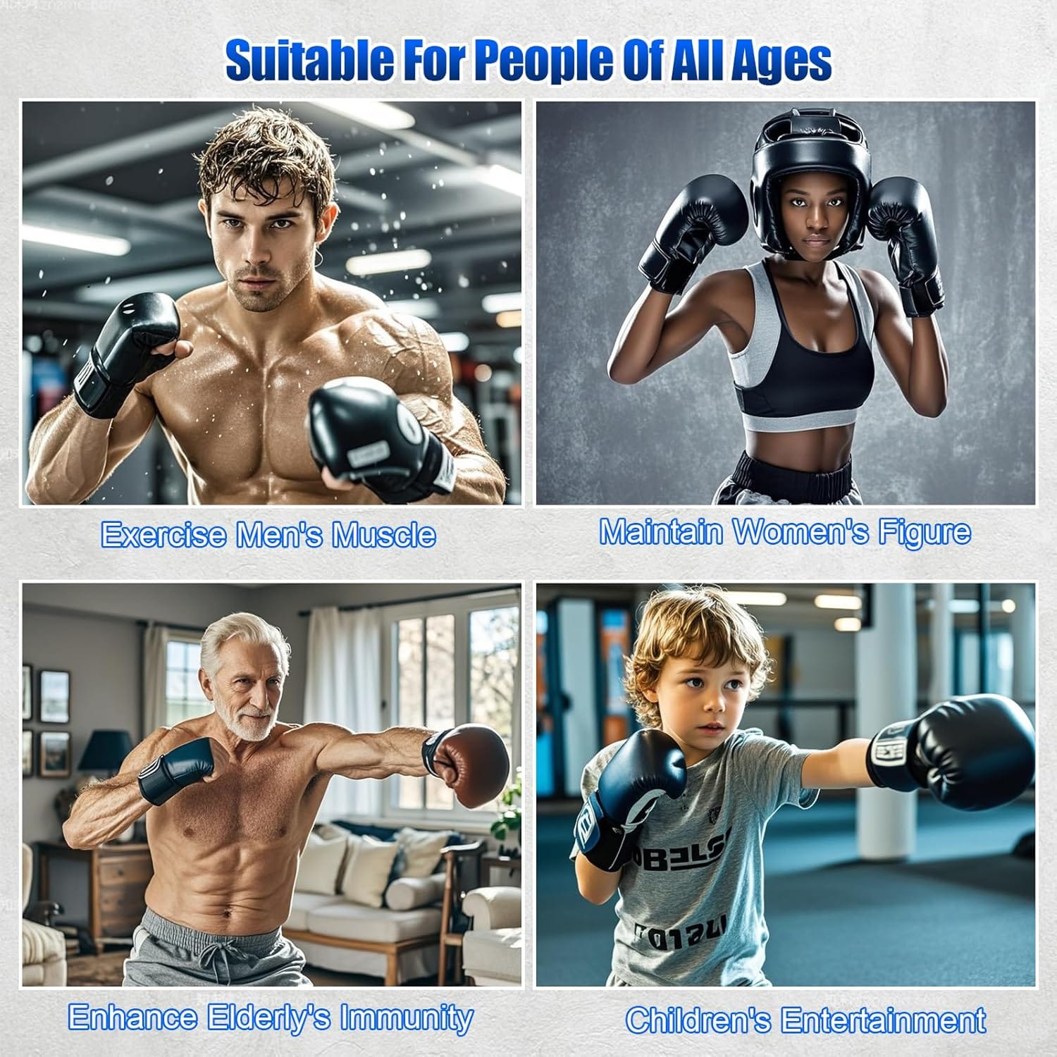 The FightMuzi Music Boxing Machine is suitable for users of all ages, from kids to adults, making it a great family fitness tool.