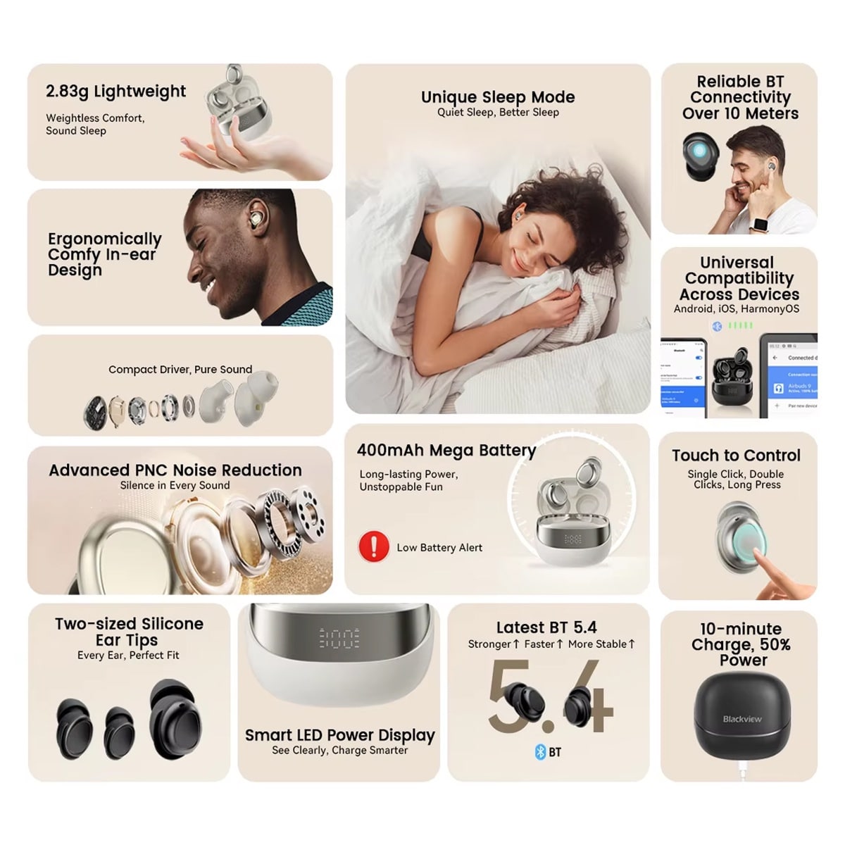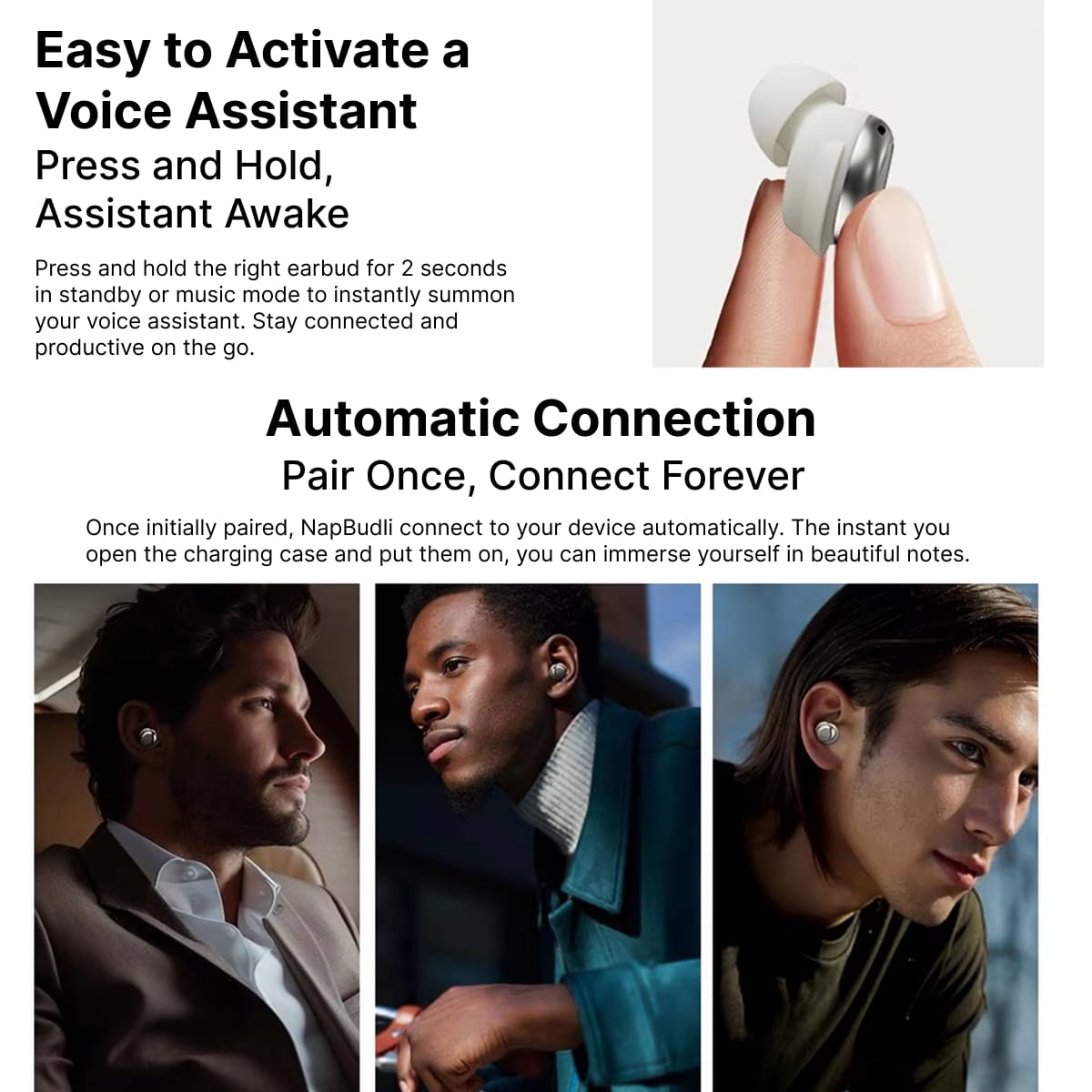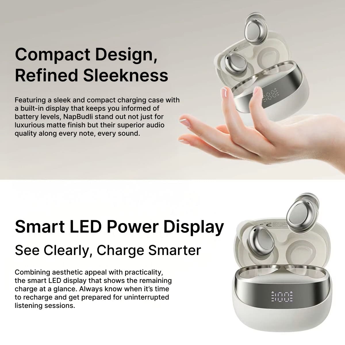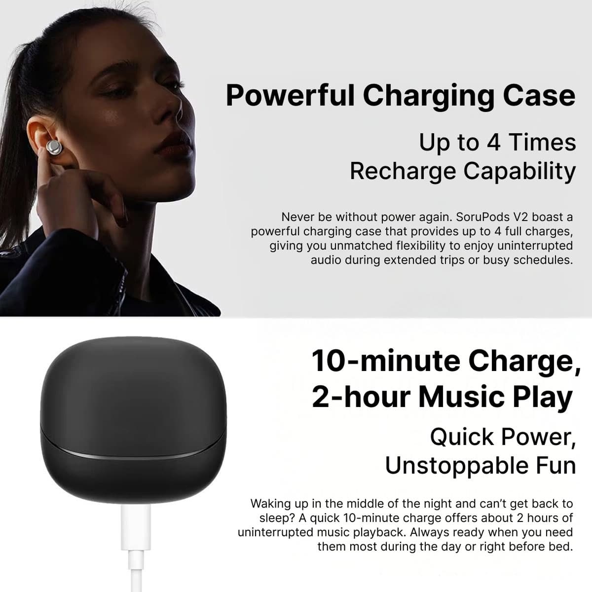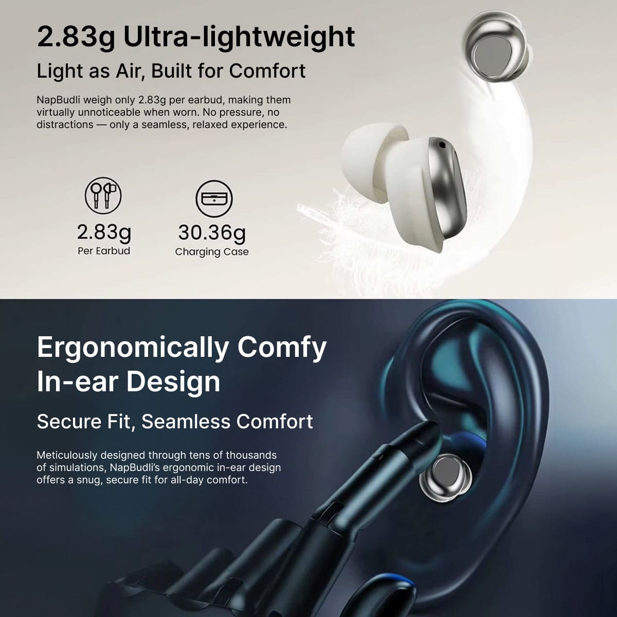 The 400mAh charging case provides hours of continuous playback. A quick 10-minute charge delivers 50% battery power, perfect for spontaneous naps or full nights of audio.