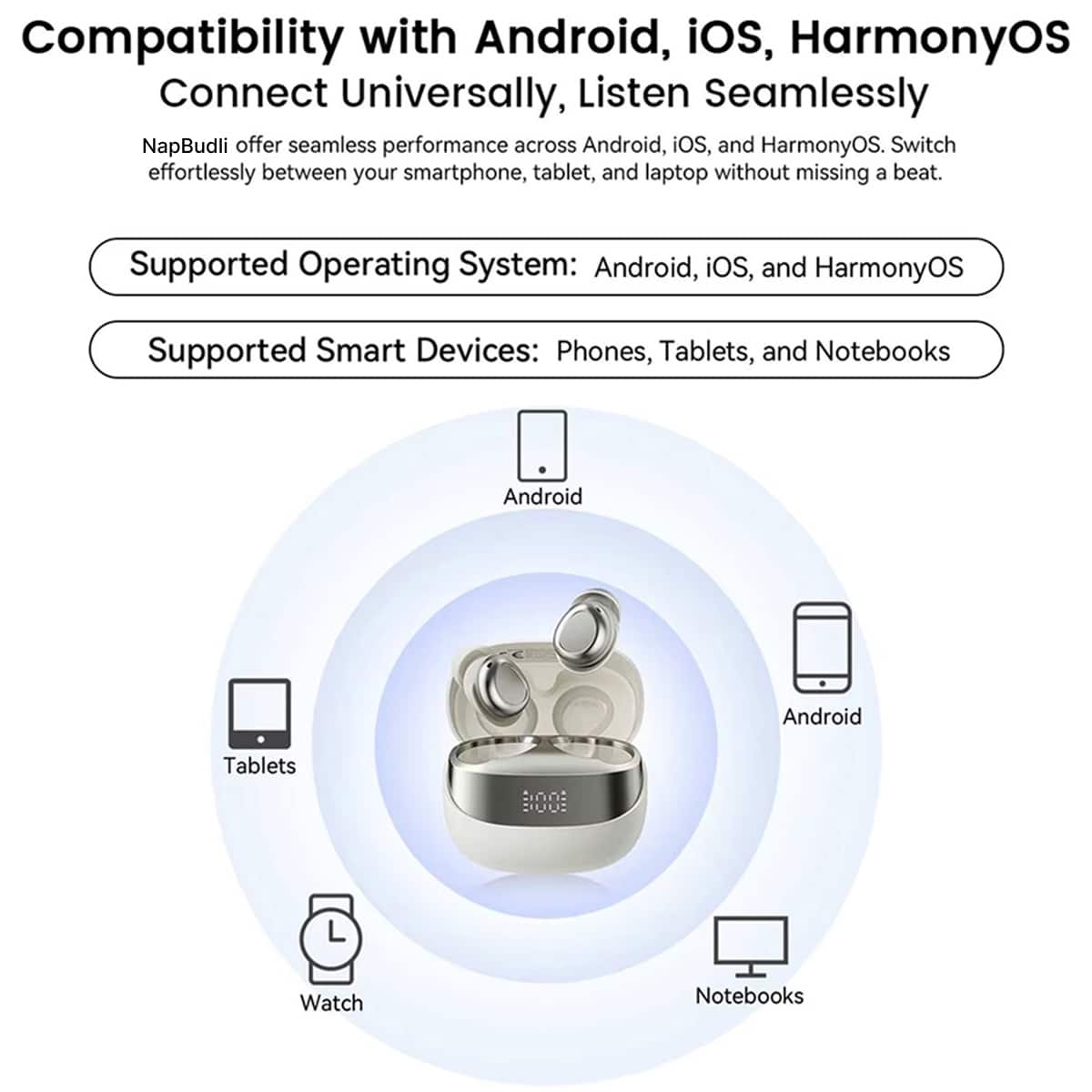 Absolutely. NapBudli Earbuds for Side Sleepers feature Bluetooth 5.4 technology, ensuring universal compatibility across Android, iOS, tablets, and other Bluetooth-enabled devices without connectivity issues.