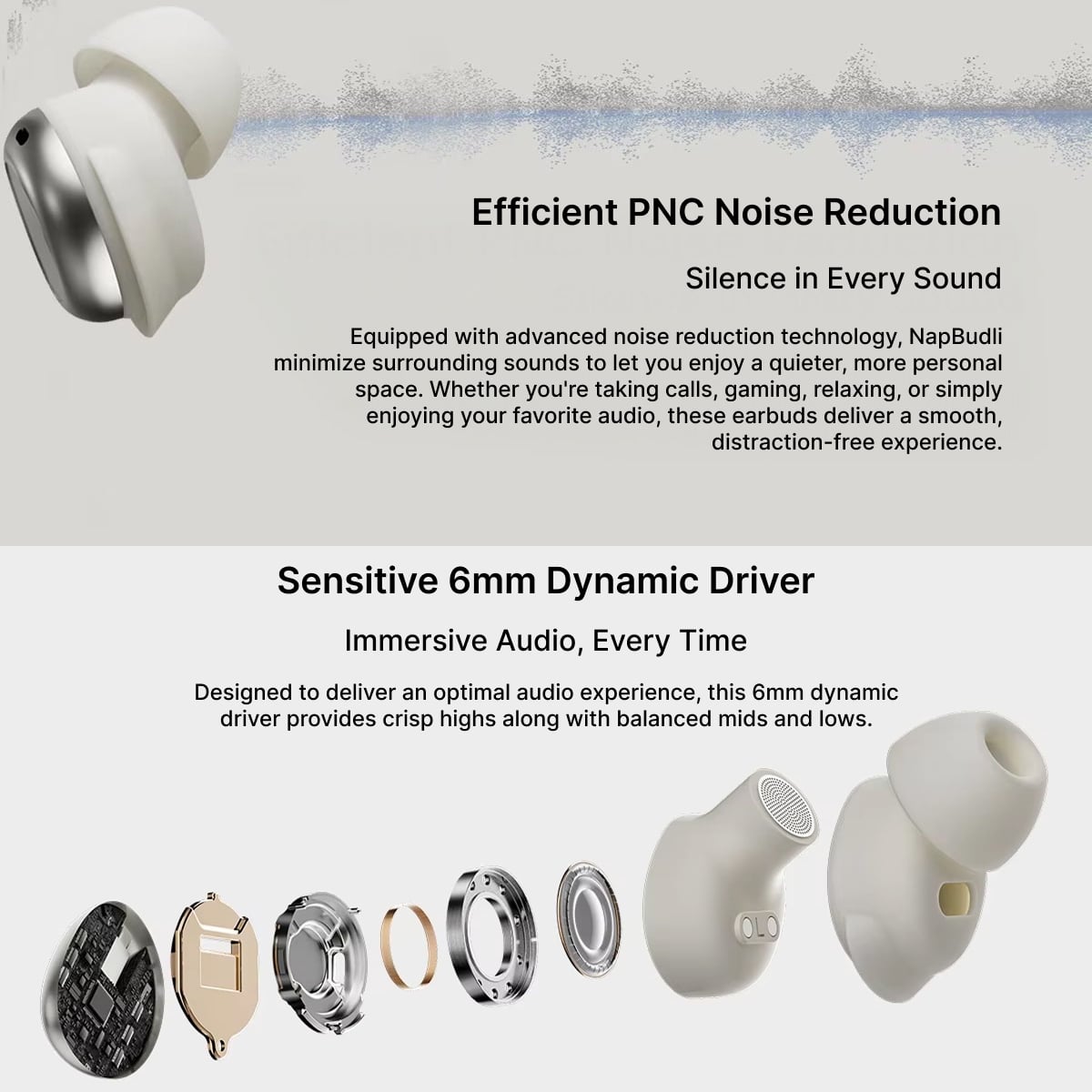 The advanced PNC noise reduction technology blocks external sounds effectively. Combined with the 6mm dynamic driver, you'll enjoy clear, soothing audio perfect for sleep and relaxation.