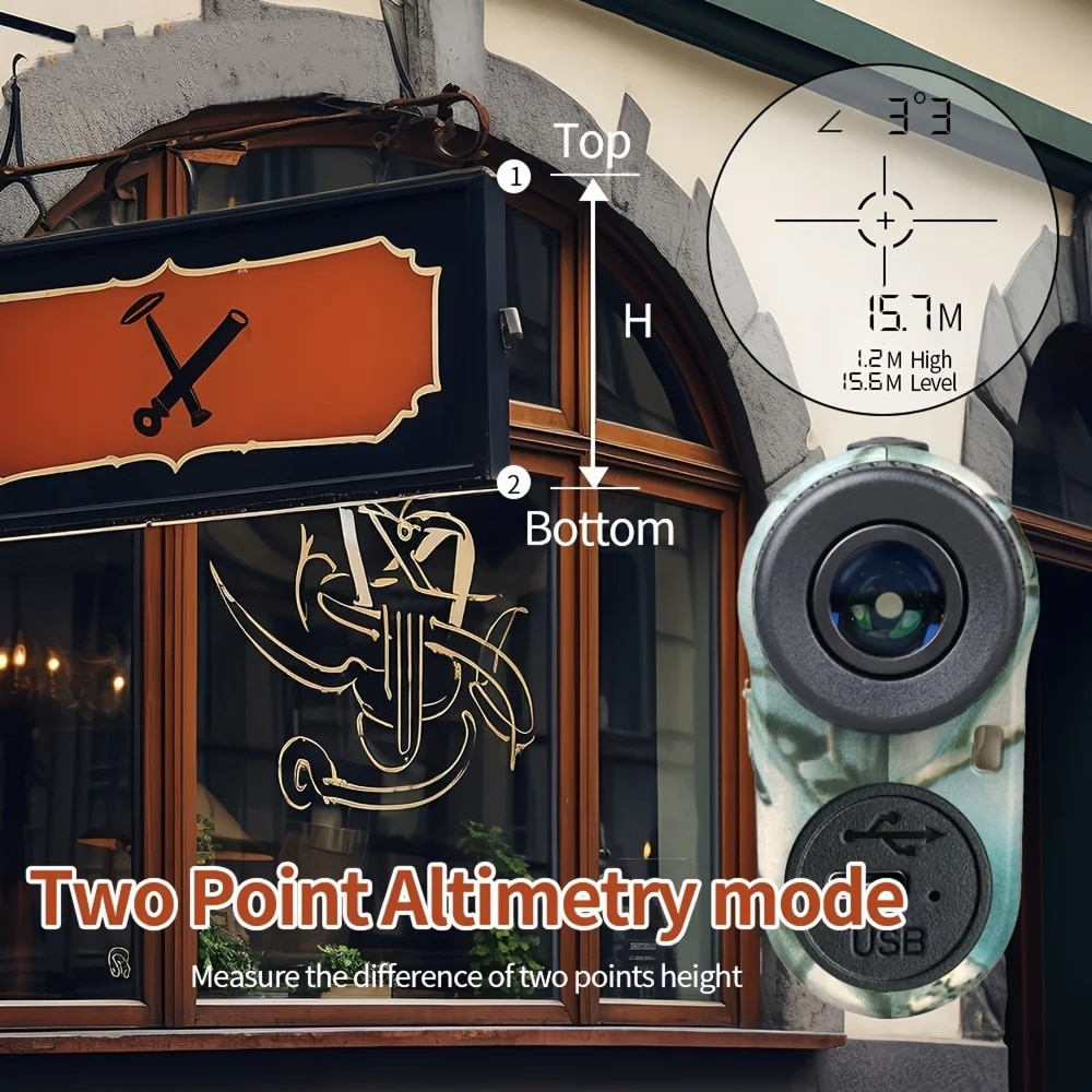 Yes, the two-point height measurement mode calculates vertical distances perfectly. Simply range the base and top of any object, and the rangefinder displays the height difference—ideal for tree stand placement.