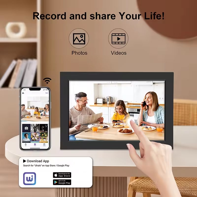 Absolutely! You can hide, organize, and customize photo display order, slideshow settings, and caption preferences through touch controls.