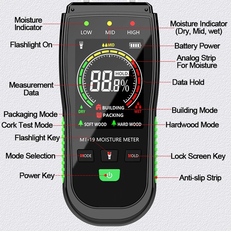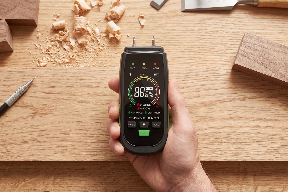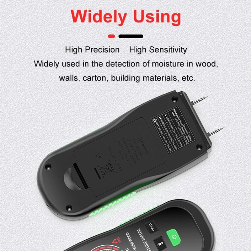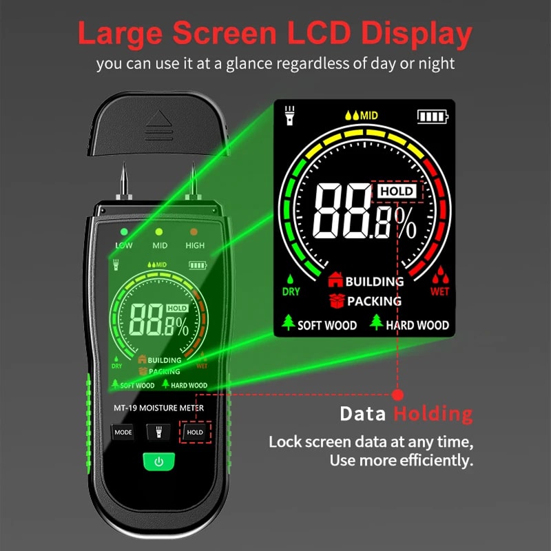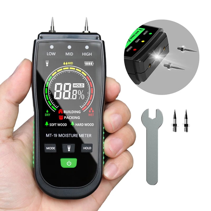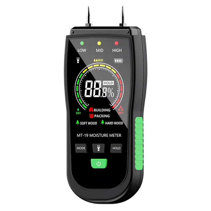 The device provides professional-grade accuracy of plus or minus 0.5 percent, ensuring you get the precise data needed for woodworking or home inspections.