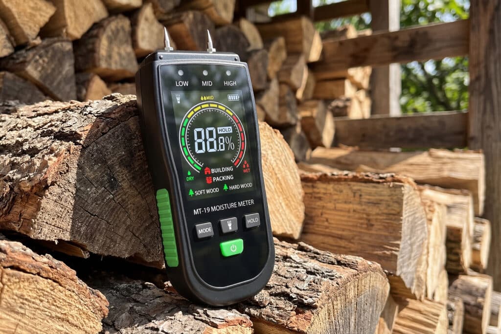 Yes, it is perfect for testing firewood. Use the soft or hard wood modes to ensure your logs are seasoned enough for efficient burning.