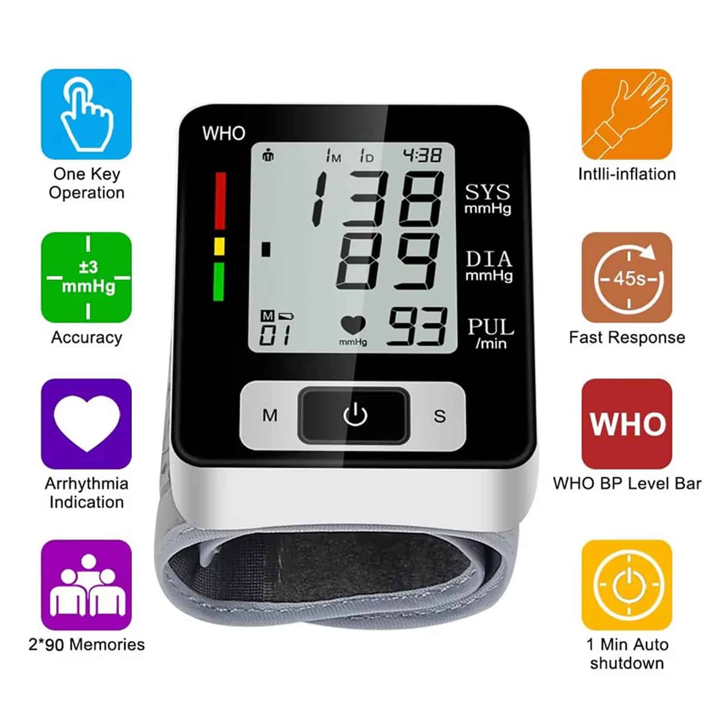 The WrisMoni provides medical-grade accuracy with ±3mmHg for blood pressure and ±5% for pulse rate, delivering readings comparable to professional clinical equipment you can trust.