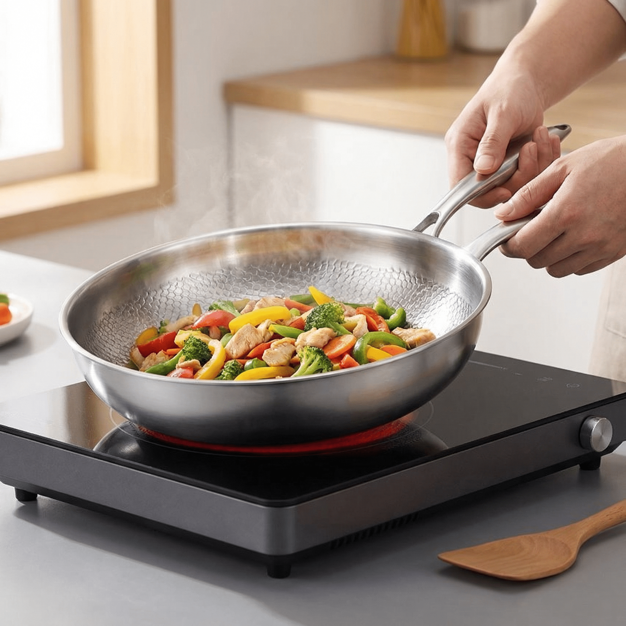 Constructed from heavy-gauge materials with a reinforced scratch-resistant coating, TikaxPan withstands the rigors of everyday cooking without warping, chipping, or losing its non-stick magic.